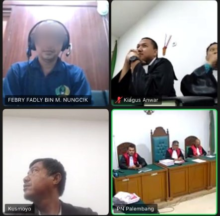 Febry dihadirkan melalui aplikasi zoom dimana saat ini terpidana menjalani penahanan di Lembaga Pemasyarakatan Merah Mata, Kota Palembang, Sumatera Selatan.