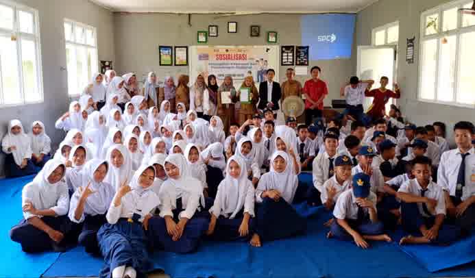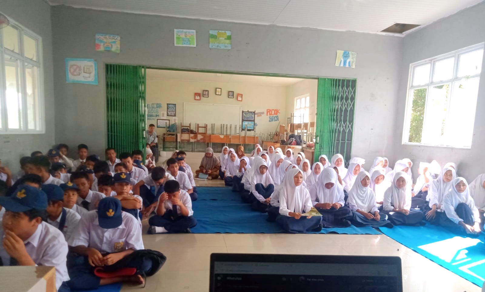 Suasana Sosialisasi Pencegahan Perundungan di SMP 3 Simpang Teritip, Bangka Barat.