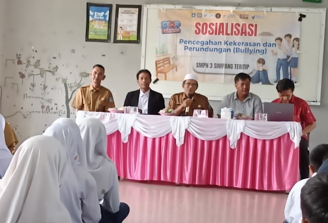 “Kegiatan ini tentunya sangat baik dan dapat memberikan wawasan tentang dampak dan hukuman bagi pelaku perundungan khususnya disekolah dan dalam penyampaian materi dapat diterima dan di ikuti oleh siswa dengan penuh antusias dan perhatian,”ujar Kepala Sekolah SMP 3 Simpang Teritip Rizal, Senin (20/4/2026)