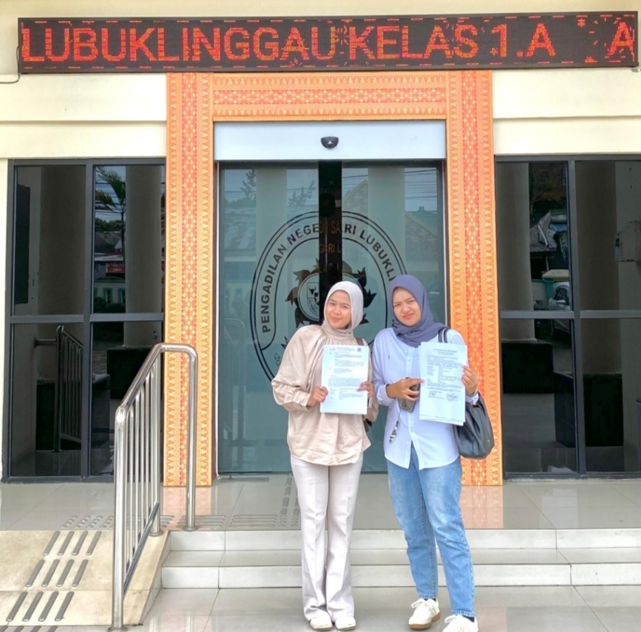 Advokat eLPDKP Babel Rosalinda Pratiwi Tarigan,S.H,M.H dan Asisten Advokat Selvy,S.H,M.H Saat Berada di Pengadilan Negeri Lubuk Linggau